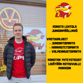 UPV:n uusi junioripäällikkö on valittu UPV:n uusi junioripäällikkö on 23-vuotias Konsta Lehtola, joka on nähnyt pesäpalloa enimmäkseen kentän pinnalla