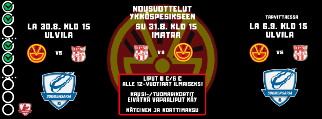 UPV:n miehet kohtasivat Ykköspesiksen nousukarsintaotteluissa Imatran Pallo-Veikot. Ensimmäinen kohtaaminen oli jälleen toisintoa aiemmista jatkopeleistä. Ensimmäinen jakso oli tiukkaa, ja päättyi
