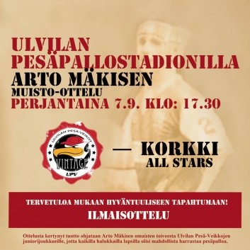 UPV Vintage ja Ulvilan Pesä-Veikot ry järjestävät yhteistyössä muisto-ottelun edesmenneen Arto Mäkisen muistoa kunnioittaen Sähköisen käsiohjelman löydät tästä linkistä. Mäkisen