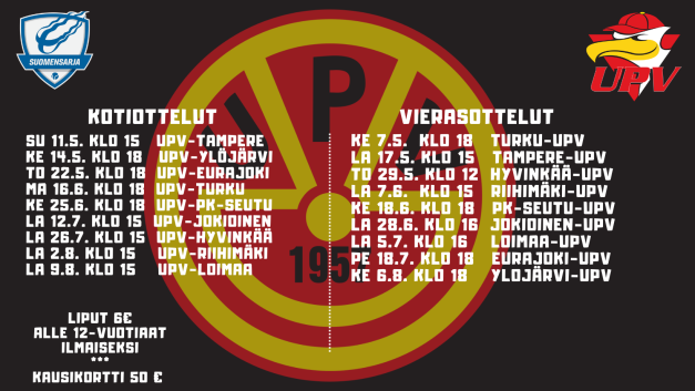UPV:n miesten edustusjoukkueen otteluohjelma on selvillä. Etelälohkossa pelaavat UPV:n lisäksi Eurajoki, Hyvinkää, Jokioinen, Loimaa, Pääkaupunkiseudun pesäpalloakatemia, Riihimäki, Tampere, Turku ja