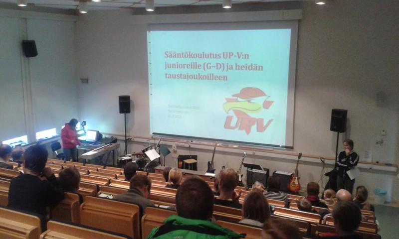UP-V:n järjestämässä sääntö- ja tuomarikoulutuksessa oli mukavasti väkeä. Noin nelisenkymmentä pelaajaa, vanhempaa ja joukkueiden toimijaa kokoontuivat Ulvilan lukion auditorioon keskiviikkoiltana 11.3.2015 kuuntelemaan pesäpallon sääntöjä ja tuomarien tehtäviä. Ennen kuin kenestäkään voi tulla pesäpallotuomaria, olisi syytä osata pesäpallon säännöt. Koulutuksessa käytiinkin säännöt läpi niin tuomareiden kuin pelaajienkin näkökulmasta. Tiedätkö, esimerkiksi mitä pesärikko tai tekninen palo tarkoittavat? Nämäkin käsitteet käytiin koulutuksen aikana läpi Tanja Palmrothin ja Mika Mikolan toimesta.