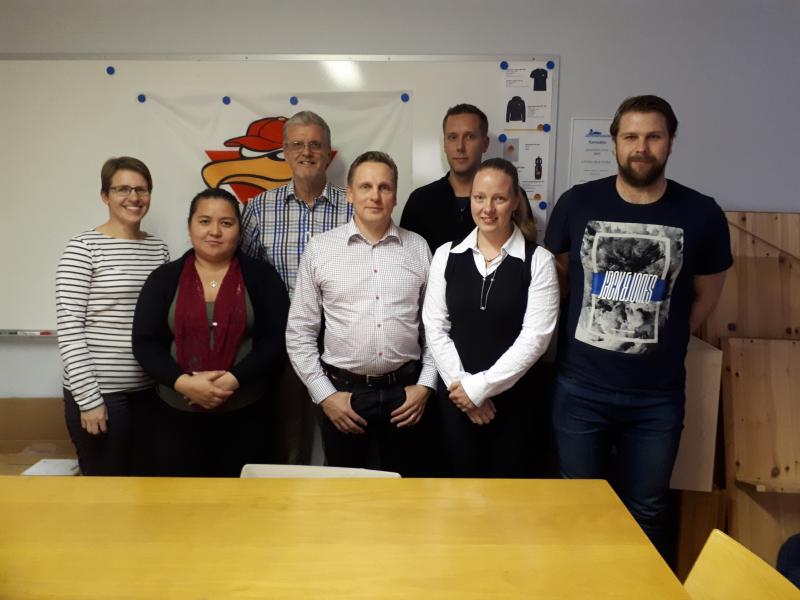 Uusi johtokunta vasemmalta alkaen Minna Vepsä, Mari Timgren, Mauri Järvinen, Saku Junnikkala, Jussi Väkiparta, Piia Rinne ja Erno Kulmala. Kuvasta puuttuu Asko Mansikkamäki (Kuva: Jussi Elo).