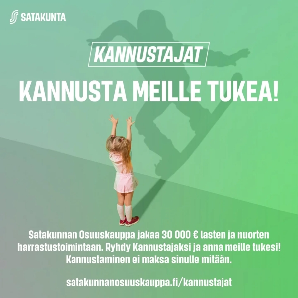 Satakunnan Osuuskauppa ja UPV ovat sopineet Kannustajat-yhteistyöstä vuodeksi 2026. Lisätietoja tästä ja kannustajaksi liittymisestä löydät täältä