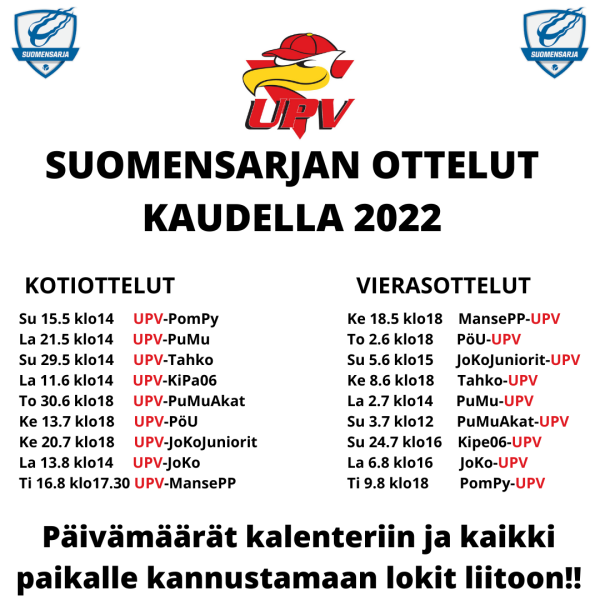 Suomensarjan otteluohjelma on julkaistu!