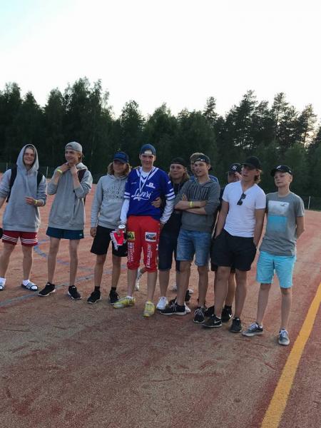 Samuli joukkueensa kanssa yhteiskuvassa arvo-otteluiden jälkeen