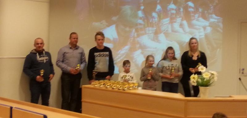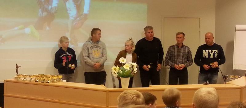 Vas. vuoden joukkue Dp punaiset ja oikealla poika- ja tyttökykyjä sekä maakkarin vuoden nais- ja miespelaajat