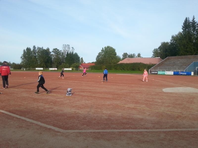 Osa vanhemmista jäi seuraamaan, kun lapsille opetettiin sekä heitto- että lyöntitekniikkaa. Aluksi pelattiin kuitenkin leikkimielistä peliä, ettei homma mennnyt heti kovin vakavaksi. Lapset olivat riemulla mukana ja sai Mikolakin vähän hikeä pintaan. Lapset näkivät myös Kiviojan hienon taidonnäytteen pesälle syöksymisestä.