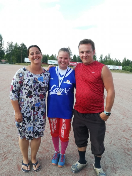 Elsi Ventelä valmentajiensa kanssa yhteiskuvassa Itä-Länsi -ottelun jälkeen (Kuva: Sari Ventelä)
